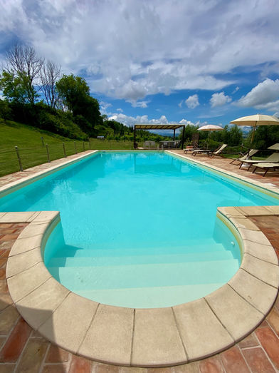 Adagiata vicino al casale, la piscina è di 7m x 14m , ha una profondità di 1.50m.